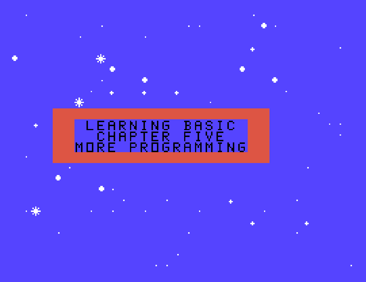 The following is a run-through of “Learning BASIC, Chapter Five: More Programming” for the Texas Instruments TI-99/4A Home Computer, emulated via the Classic99 Emulator.